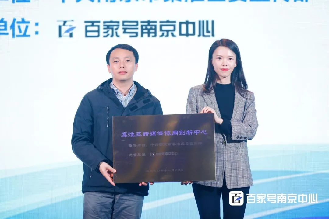 授牌儀式上,秦淮區(qū)委網(wǎng)信辦專職副主任祝鯤鵬向百家號南京中心授予“秦淮區(qū)新媒體協(xié)同創(chuàng)新中心”稱號。秦淮區(qū)宣傳部將攜手百家號南京中心共同為南京的內(nèi)容創(chuàng)作者持續(xù)提供優(yōu)質(zhì)的平臺(tái)和資源,打造自媒體孵化基地,推動(dòng)南京內(nèi)容生態(tài)的發(fā)展。