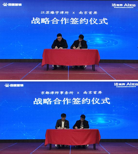 在多年的發(fā)展中,離不開廣大法律服務(wù)行業(yè)客戶的信任與支持,會(huì)上南京首屏與江蘇臻宇律所、京都律師事務(wù)所簽訂戰(zhàn)略合作協(xié)議,借助百度平臺(tái)推動(dòng)律所的創(chuàng)新式營銷能力,促進(jìn)法律服務(wù)行業(yè)的發(fā)展。